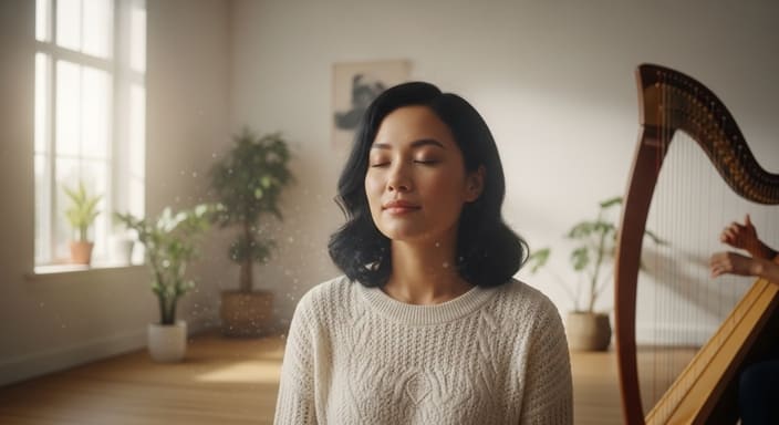 また、音の余韻が長く残ることで、呼吸や心拍のリズムが自然と整いやすくなります。さらに、ハープの音色は昔の記憶と結びつきやすい傾向があります。