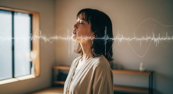 音楽を聴くという行為は、耳だけの体験だと思われがちですが、実際には身体全体が関わっています。生演奏の音は空気の振動として広がり、皮膚や骨、内臓を通して身体の奥にまで伝わります。特に低音域や柔らかな響きは、胸や腹部に共鳴し、呼吸のリズムに影響を与えることがあります。