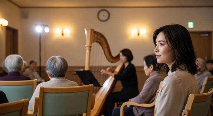 本記事では、アイリッシュハープの生演奏を介護施設で行った実体験をもとに、生演奏がなぜ人の心を動かすのか、その理由と現場で起きた変化を丁寧に掘り下げていきます。